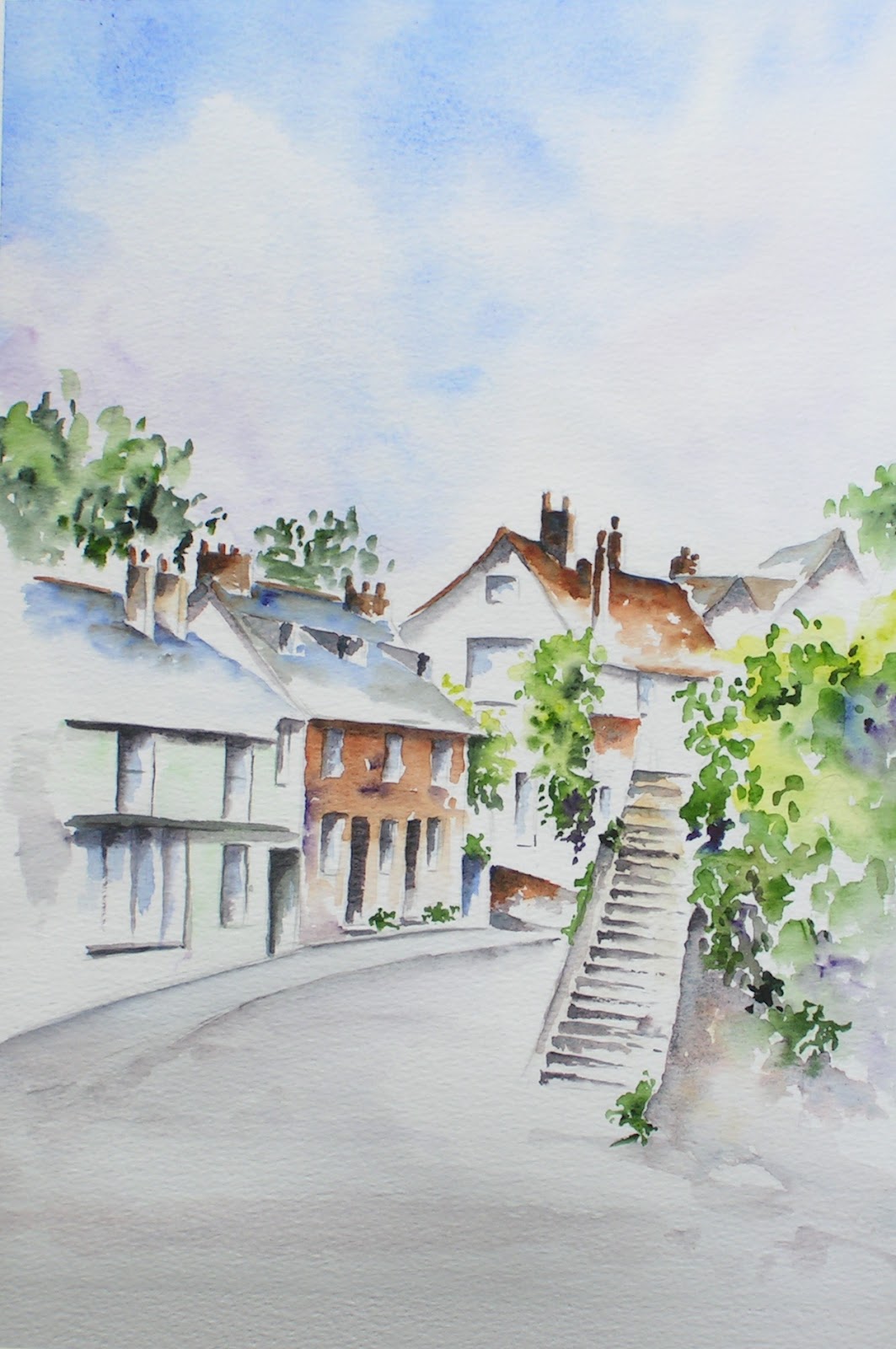Here are the sketches I have done so far. It has been difficult, and unfortunately I haven't been able to paint outside due to the weather. I have been doing them in an A4 bound book, Sanders Waterford 140 lb (300gsm) NOT paper, book available from Heaton Cooper.